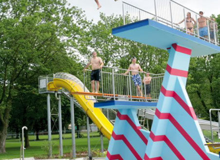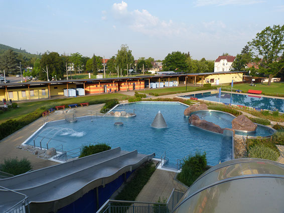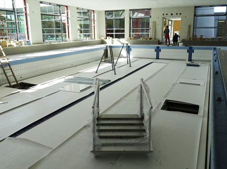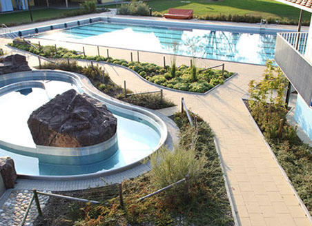 Für die Erweiterung der zusammenhängenden Bäderlandschaft wurde an den Bestand dieses Objekt angepasst. Sowohl die technische Infrastruktur wie auch die mögliche Erschließung waren maßgebend. Von der Bestandserfassung bis zur Bauabnahme betreuten wir das Vorhaben. Besonderheit waren der frei hängende Brückenübergang an das Hallenbad, sowie die millimetergenaue Anpassung des Hubbodens mit vorgefertigten Entwässerungsbauteilen.