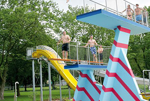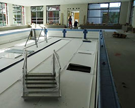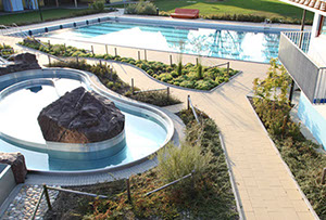 Für die Erweiterung der zusammen-hängenden Bäderlandschaft wurde an den Bestand dieses Objekt angepasst. Sowohl die technische Infrastruktur wie auch die mögliche Erschließung waren maßgebend. Von der Bestandserfassung bis zur Bauabnahme betreuten wir das Vorhaben. Besonderheit waren der frei hängende Brückenübergang an das Hallenbad, sowie die millimetergenaue Anpassung des Hubbodens mit vorgefertigten Entwässerungsbauteilen.